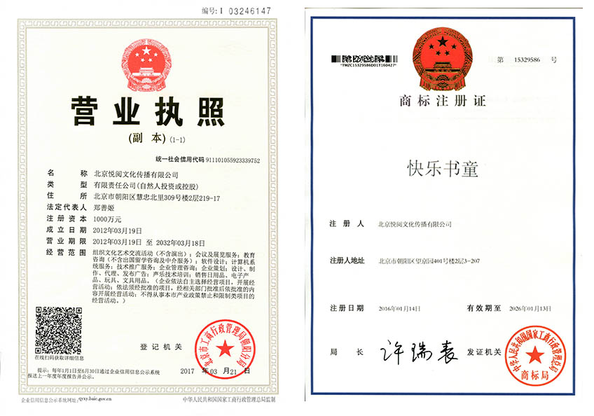 悅閱文化傳播(延邊)有限公司(以下簡稱“悅閱文化”)是北京悅閱文化傳播有限公司,成立于2012年的一家專門致力于兒童教育類項目加盟事業的公司。公司總部坐落于首都北京,注冊資金1000萬人民幣。我們力爭做國內兒童教育領域有創意,最科學的兒童教育加盟公司。我們從韓國、日本、英國、美國等知名公司引進成功的項目,造福于中國的孩子,因為中國的騰飛在孩子身上,而孩子的騰飛關鍵在于正確有效的育!