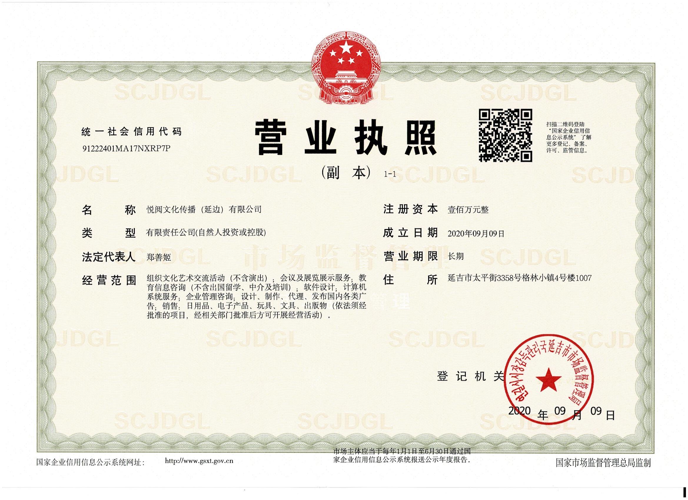 名:悅閱文化播(延邊)有限公司